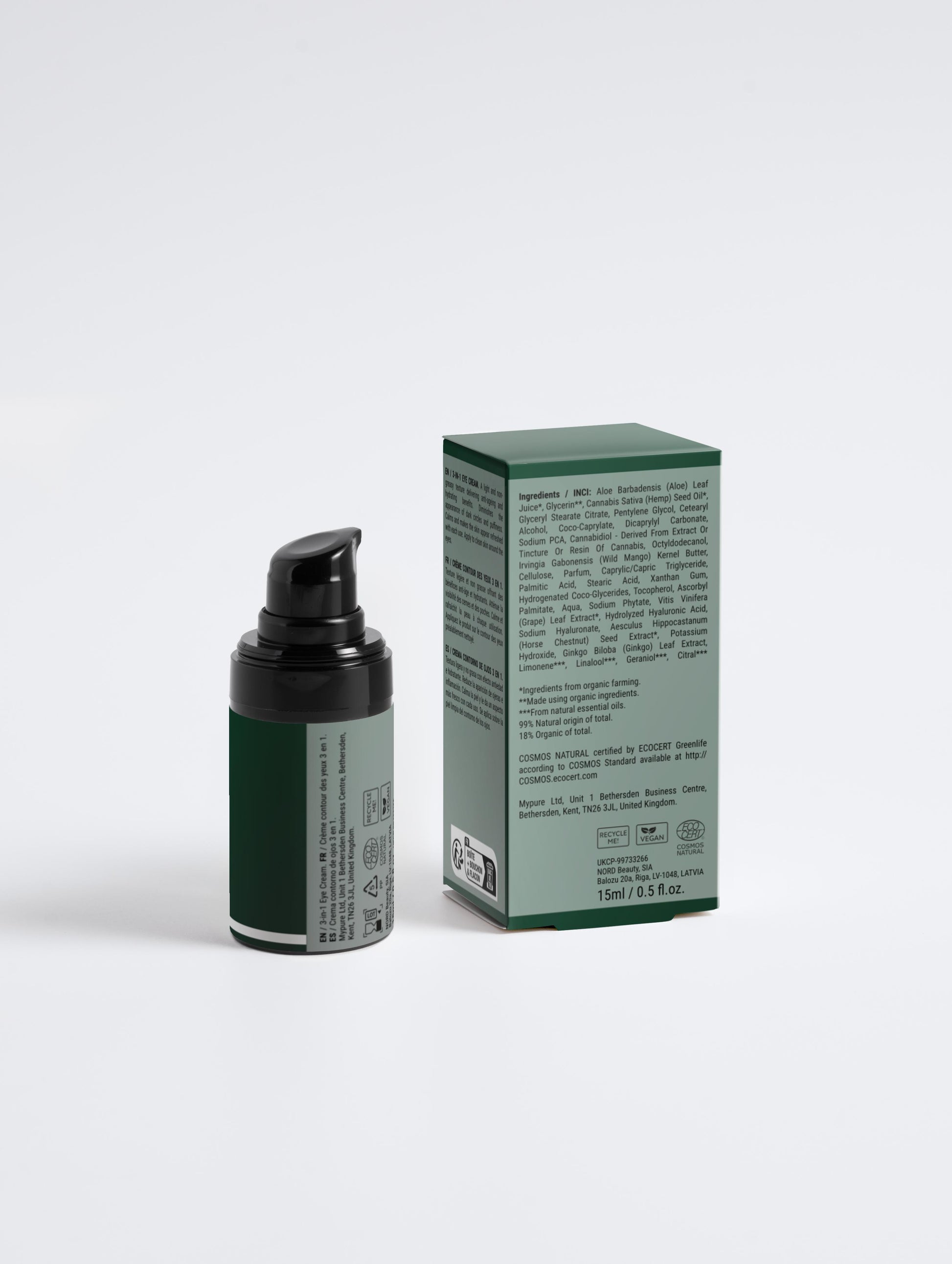 🪶 1% Cannabidiol (CBD) – Soothes the delicate under-eye area and reduces visible fatigue.
